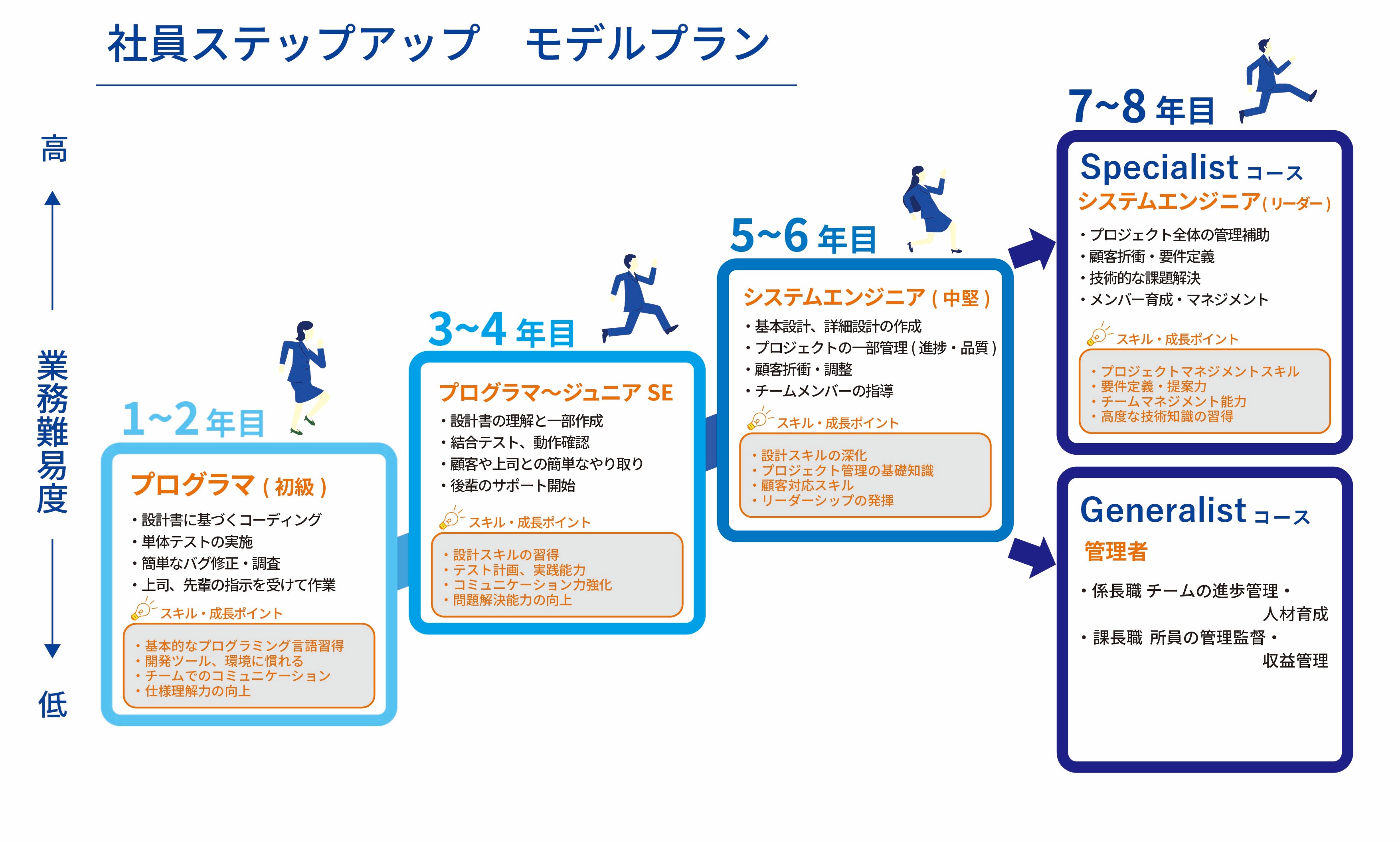 - 入社から定年までを通じて、担当業務のスペシャリストを目指せる