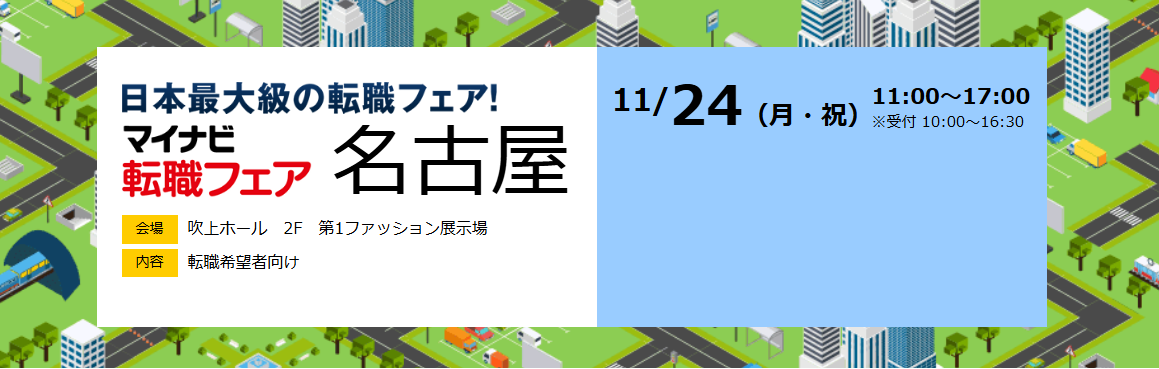 - 【名古屋】2025年11月24日(月祝)マイナビ転職フェアのお知らせ